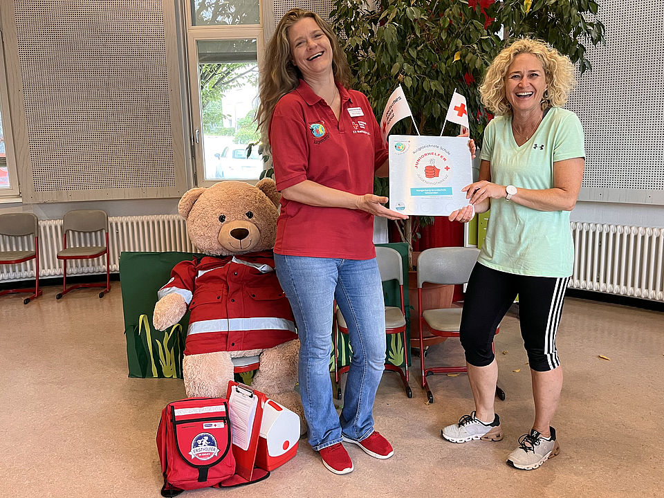 „Wir haben gemerkt: Wenn wir in jungen Jahren anfangen und die Kinder für das Helfen animieren, dann trägt das Früchte.“ Wer als Drittklässler weiß, wie ein Verband angebracht wird, wie sie eine Beule kühlen und in jedem Fall Trost spenden können, dann entwickle der Nachwuchs Empathie und die Hemmschwelle, im Notfall Hilfe zu leisten, sinkt – später dann auch als Erwachsener. „Einmal Ersthelfer – immer Ersthelfer“ lautet die Devise beim Jugendrotkreuz. Dafür setzt sie sich an ihrer Schule ein. Mit Erfolg.