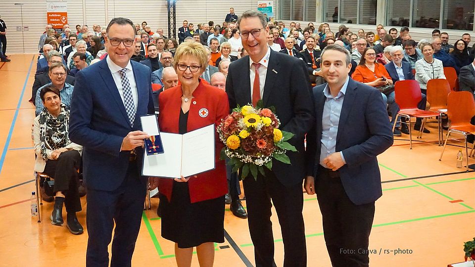 Auf Wunsch der 64-jährigen Kreissozialleiterin, die beim DRK in Oppenweiler aktiv ist und auch im Kreisverband Verantwortung übernimmt, fand die Verleihung des Bundesverdienstkreuzes im Rahmen der Kreisversammlung und damit innerhalb ihrer DRK-Familie statt. Für die Gemeinde Spiegelberg, in der Heike Steinicke unter anderem mit dem Waldkindergarten und tollen Aktionen in der „Bücherei unter'm Rathausdach“ Dinge bewegt hat, bedankte sich Bürgermeister Max Schäfer, der von einer außergewöhnlichen Lebensleistung sprach, von der die Gemeinde profitiere. „Ihre Arbeit ist ein Geschenk für unsere Gemeinschaft“, so Dr. Richard Sigel für das DRK. Heike Steinicke habe neue Ideen und die Energie sowie auch das Netzwerk, diese auch umzusetzen. Dabei habe sie vor allem die Senioren im Blick. Mit den ehrenamtlichen Schlaganfall-Helfern und dem Angebot der Aktivierenden Hausbesuche habe sie kreisweit Akzente gesetzt. Als Kreissozialleiterin habe sie immer ein offenes Ohr für die lokalen Leitungskräfte.