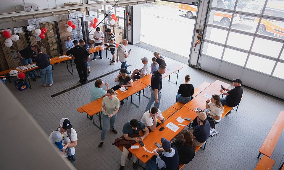 Mehrere Hundert Besucher kamen zu der Typisierungsaktion in die Rettungswache. Neben dem Wangenabstrich bot das Rahmenprogramm vielfältige Einblicke in die Arbeit der Rettungskräfte: Das Team der DRK-Rettungswache stellte den Alltag in der Notfallrettung vor, während Ehrenamtliche des DRK, des Technischen Hilfswerks und der Feuerwehr bei einer gemeinsamen Fahrzeugschau ihre Arbeit präsentierten. Auch die DRK-Drohnengruppe des DRK Sulzbach engagierte sich und bot Einblicke in ihre Arbeit. Auch Kinderschminken bot das Team an. Für die Besucherinnen und Besucher war ebenfalls bestens gesorgt: Getränke, Wurst, Kuchen und weitere Angebote sorgten für eine familiäre Atmosphäre, die viele Menschen dazu bewegte, mit der ganzen Familie vorbeizukommen und die Aktion zu unterstützen. Weil Dominik Kunzmann großer VfB-Fan ist, hatte auch der Bundesligist die Aktion in den Sozialen Medien angekündigt und war damit vielen Menschen aus der Region gefolgt, um auf die Initiative und die Not derjenigen aufmerksam zu machen, die auf eine Stammzellenspende angewiesen sind.