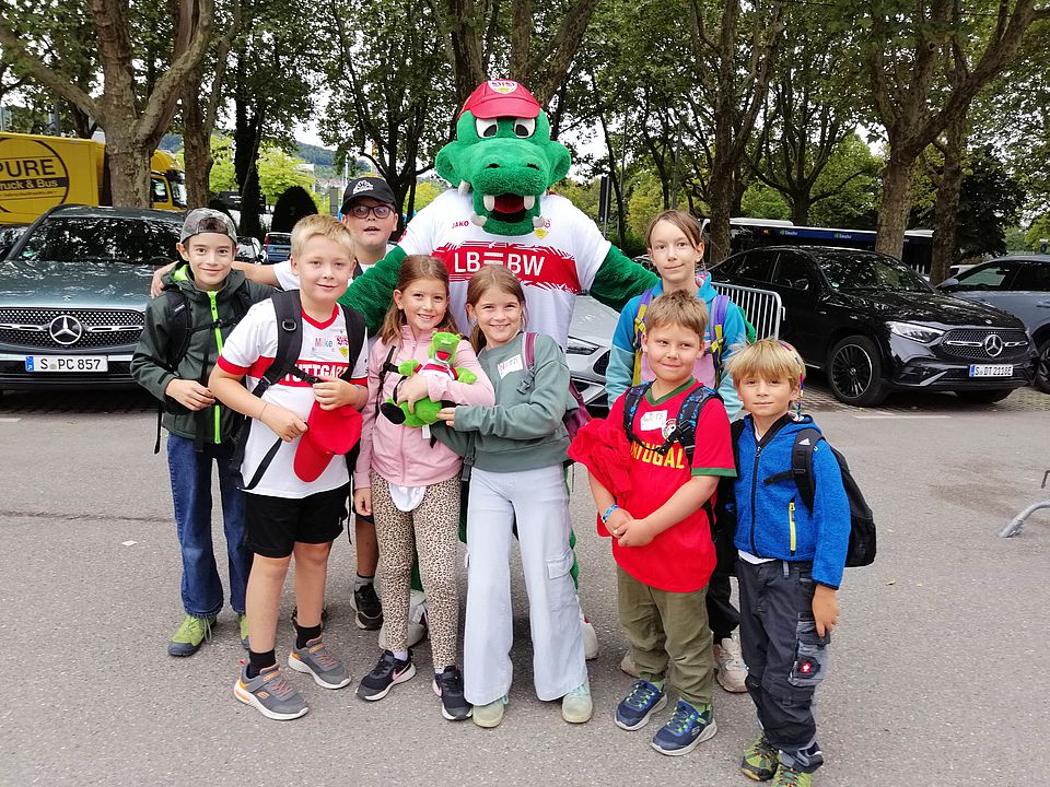 Als die Stadionführerin Meli den Kindern mitteilt, nebenan trainieren die Brustring-Kicker, werden die Augen groß. Der Nachwuchs träumt von Autogrammen – und die Fußballer geben sich alle Mühe, jeden Autogramm-Wunsch zu erfüllen. Das geht auch schneller als ein Kopfverband, den die Kinder später noch gemeinsam anlegen, als es um unter anderem um Sportverletzungen geht. Beim VfB gab es einen Blick in den Presseraum, in die VfB-Kabine, die MHP-Arena, in der an diesem Tag statt 60.000 Fans nur Greenkeeper und 20 DRKler stehen. Nach der interessanten Führung fahren die Teilnehmer des JRK-Sommerferienprogramms mit den Bullis der Mobilen Dienste nach Waiblingen, wo es am Nachmittag um die Sportverletzungen geht.