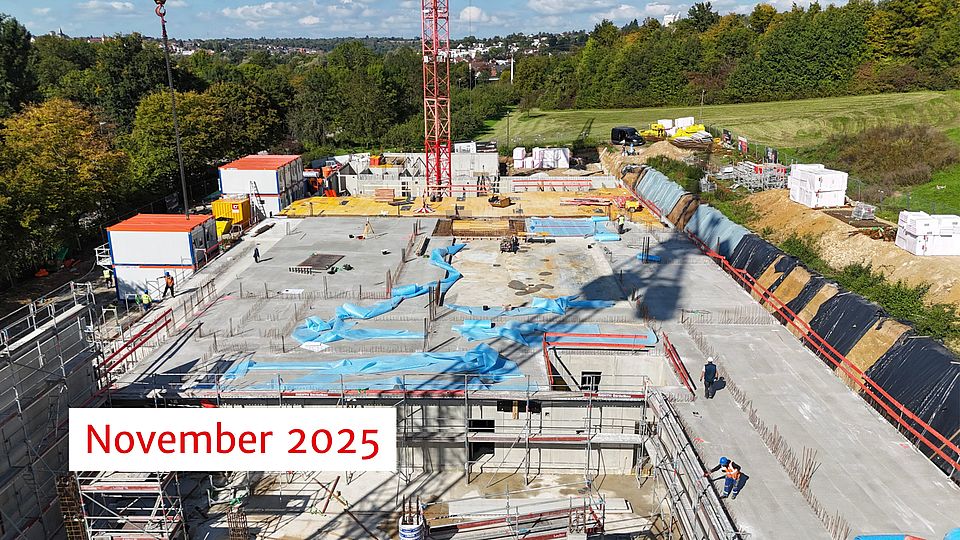 Im Juli teilte Kreisgeschäftsführer Sven Knödler mit, „das Bauprojekt sei zeitlich und finanziell auf Kurs.” m Oktober kann verkündet werden: „Nach aufwendigem Verfahren: Bebauungsplan „Beinsteiner Weg“ für DRK-Kreisgeschäftsstelle und Rettungswache tritt in Kraft.” „Im Bereich der früheren, inzwischen abgebrochenen Straßenmeisterei werden in den nächsten Jahren die DRK-Geschäftsstelle mit Rettungswache und die integrierte Leitstelle in zwei getrennten, kompakten Gebäudeteilen untergebracht, die durch ein Sockelgeschoss und eine Parkgarage verbunden sind, die ebenerdig angefahren und baulich in den Hang geschoben wird. Die 112-Leitstelle soll höchsten technischen Ansprüchen genügen und nicht zuletzt den Katastrophenschutz für außergewöhnliche Einsatzlagen zukunftssicher machen”, teilte der Kreisverband mit. Weitere Informationen entnehmen Sie dem Jahresbericht 2024 (ab Seite 14).
