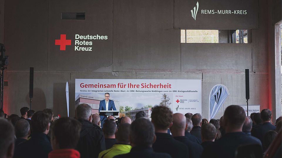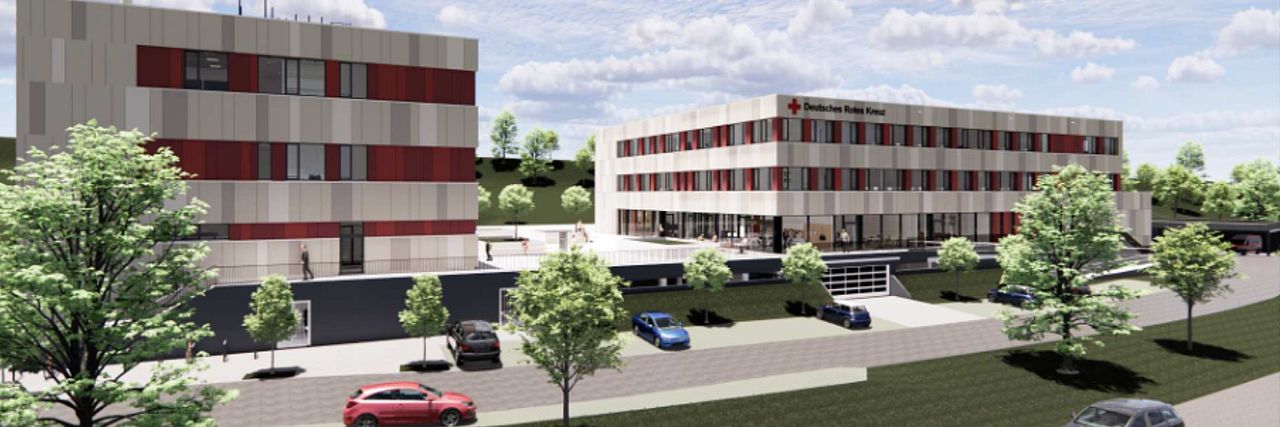 Das DRK prägt als größte Hilfsorganisation in der Region das enge Netz der Hilfe im Rems-Murr-Kreis. Zukünftig wird der Kreisverband auch ein Einfallstor der Stadt Waiblingen prägen. Auf dem hin zur B14 ansteigenden Grundstück entstehen die neue Rettungswache Waiblingen mit der Geschäftsstelle sowie die Integrierte Leitstelle in zwei getrennten, kompakten Baukörpern, die sich wunderbar in die bestehende Landschaft einfügen und die Professionalität des Kreisverbandes und der Notfallrettung in Waiblingen und im Kreis nach außen widerspiegeln werden.
