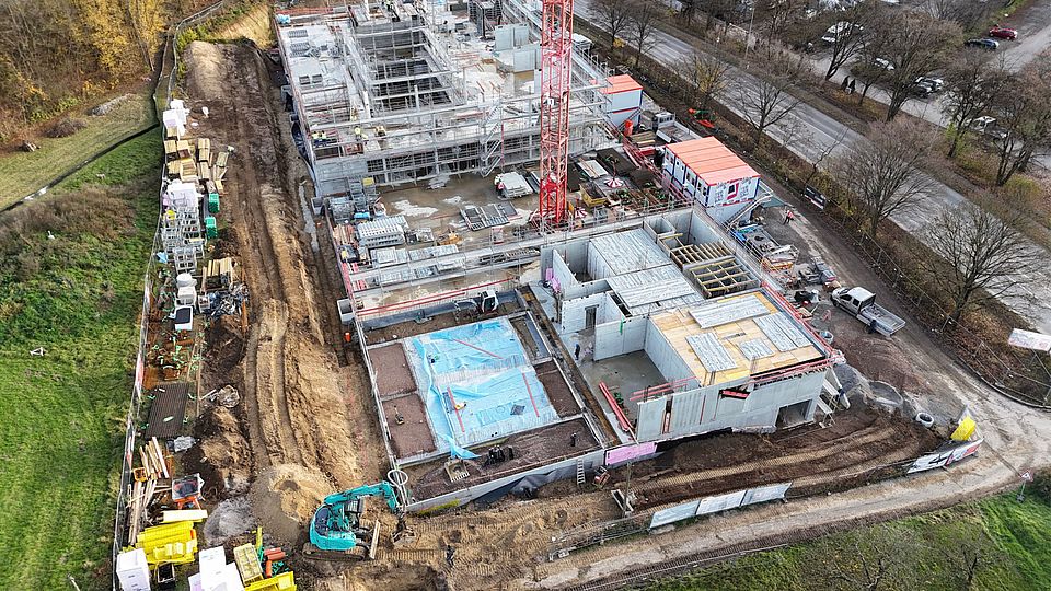 Bereits ab Ende 2020 wurden die bauvorbereitenden Maßnahmen wie die Rodungsarbeiten sowie die Suche und Schaffung von Ausgleichsflächen, der Rückbau der am Grundstück vorhandenen Hütten sowie der artenschutzrechtlichen Maßnahmen zur Eidechsenumsiedelung zwischen dem DRK, dem Landkreis, der Kreisbaugruppe und der beauftragten Projektsteuerung PSB Wasner abgestimmt und termingerecht umgesetzt.